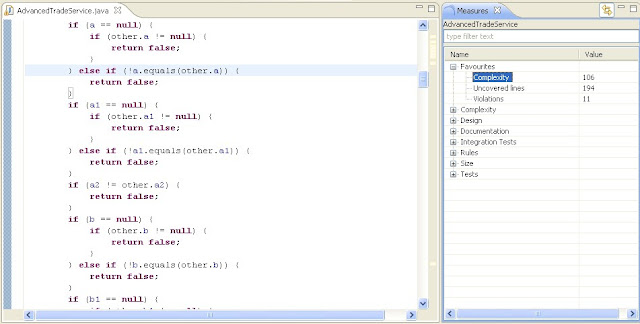 However you might open the code and find like this. The average complexity in our system is 10. This piece of code has a complexity of 106!