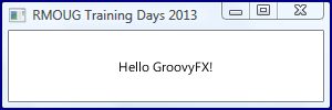 The just referenced main GroovyFX page includes a "Hello World" example. In this post, I look at an even simpler "Hello World" example using GroovyFX. After that, I look at a slightly more involved example of using GroovyFX to render a Pie Chart. Both of these are examples I intend to show at my RMOUG Training Days 2013 presentation ("Charting Oracle Database Data with JavaFX and Groovy") this coming week.